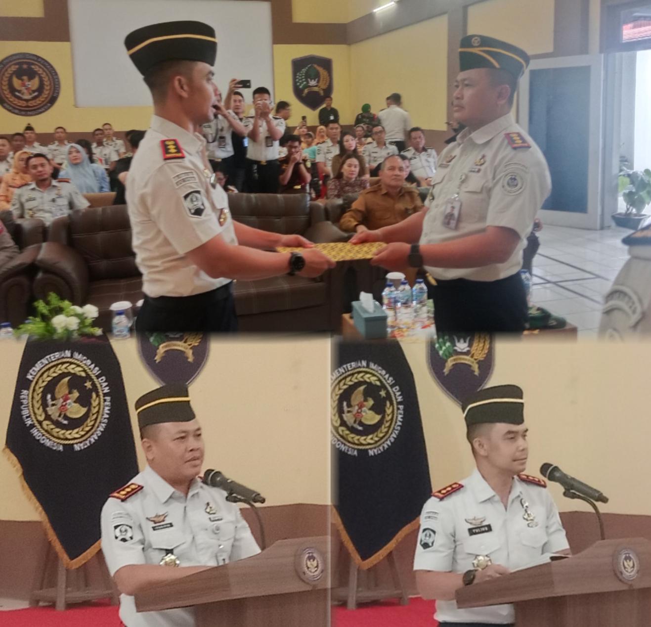 Prosesi sertijab dan pisah sambut yang dilaksanakan di Aula Lapas Tondano dihadiri Pelaksana Harian (Plh) Kakanwil Imigrasi dan Pemasyarakatan (Imipas) Sulawesi Utara, Yulius Paath SIP DEA.