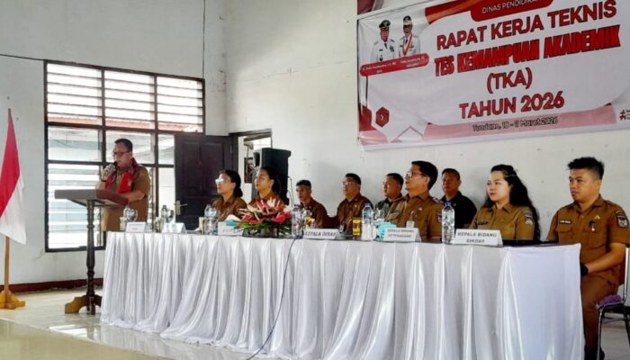 MINAHASA, jejakperintis.com – Bupati Minahasa, Dr. Robby Dondokambey, S.Si., M.A.P., membuka Rapat Kerja Teknis Tes Kemampuan Akademik (TKA) Jenjang SD dan SMP Tahun 2026 di Aula Dinas Pendidikan Kabupaten Minahasa, Selasa (10/3/2026).