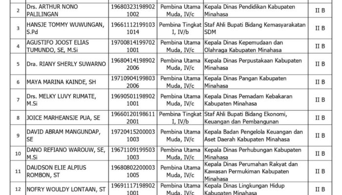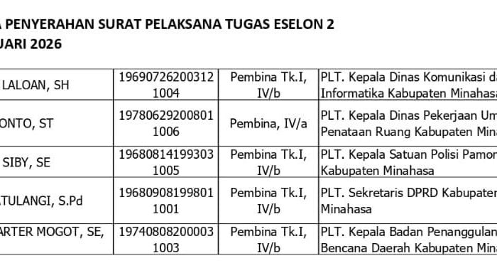 pemerintah kabupaten minahasa menaruh harapan besar kepada saudara-saudara sekalian. dengan pengalaman, kompetensi, dan dedikasi yang dimiliki, saya yakin saudara mampu menjadi penggerak perubahan dan penguat birokrasi yang profesional, bersih, dan melayani.
