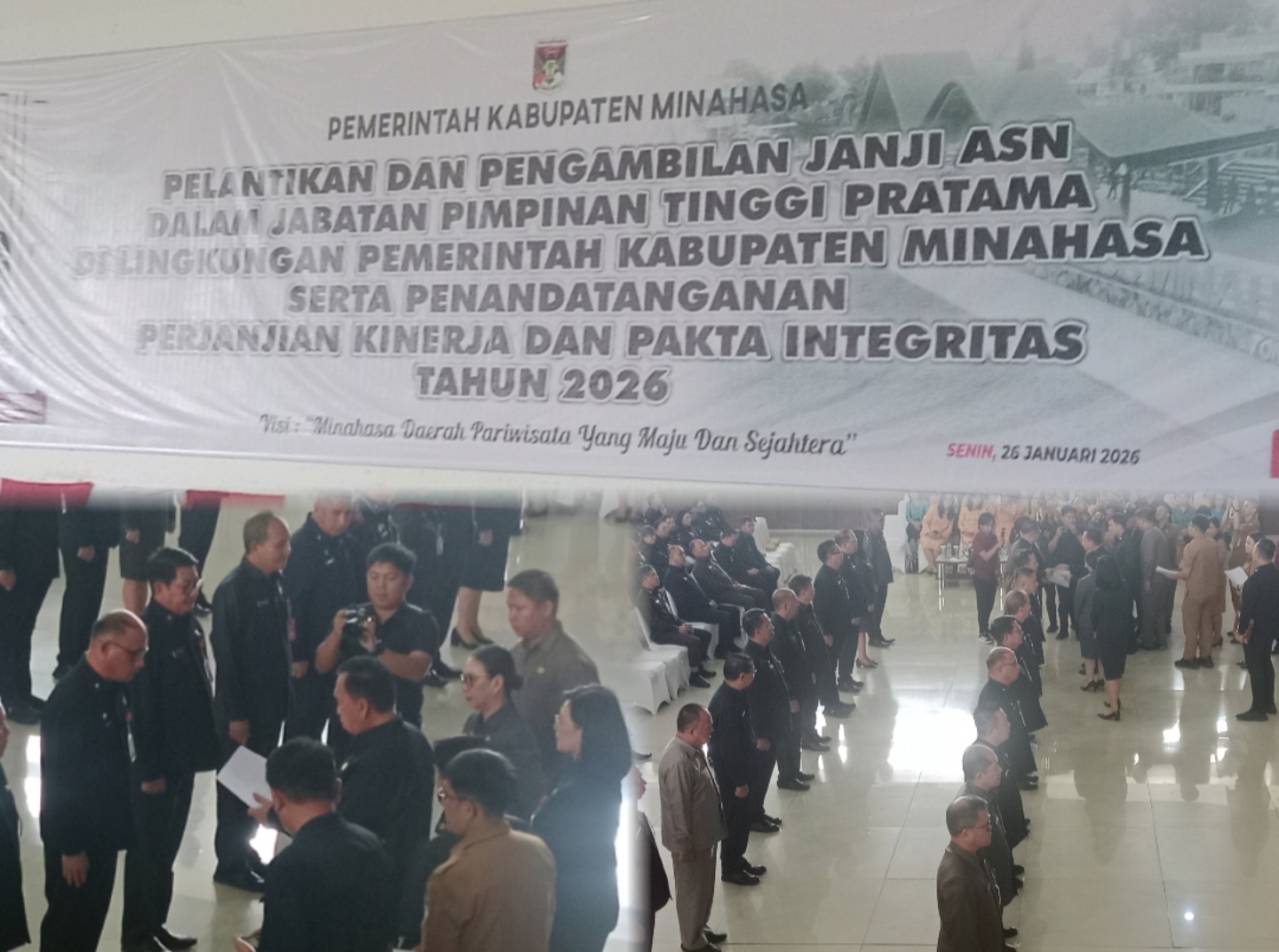 MINAHASA, jejakperintis.com — Pemerintah Kabupaten Minahasa melaksanakan pelantikan dan pengambilan janji ASN Dalam jabatan Pimpinan Tinggi Pratama di Lingkungan Pemerintah Kabupaten Minahasa serta penandatanganan perjanjian kinerja dan Pakta Integritas Tahun 2026. Bertempat di Gedung Wale Ne Tou, Tondano, Senin (26/1/2026).