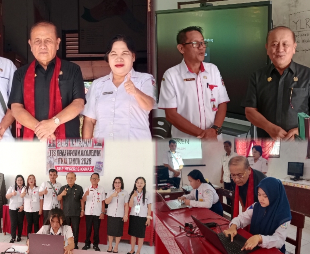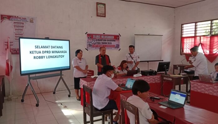 MINAHASA, jejakperintis.con — Ketua DPRD Minahasa Drs Robby Longkutoy MM, membuka Token kegiatan Tes Kemampuan Akademik (TKA) Tahun 2026 di SMP Negeri 2 Langowan sekaligus memantau pelaksanaan TKA di SMP N 6 Kakas, Rabu (8/4/2026).