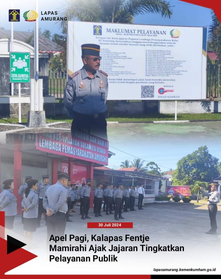 Bertempat dihalaman depan Kantor Lapas Amurang, Kalapas Fentje Mamirahi menjelaskan terkait dengan penguatan pengamanan, pemahaman tusi, pelayanan publik, penataan keadministrasian dan yang utama adalah sinergitas antar pegawai yang dikuatkan dan lebih mendalam dengan harapan agar tidak timbul permasalahan keamanan dan ketertiban di Lapas Kelas III Amurang.