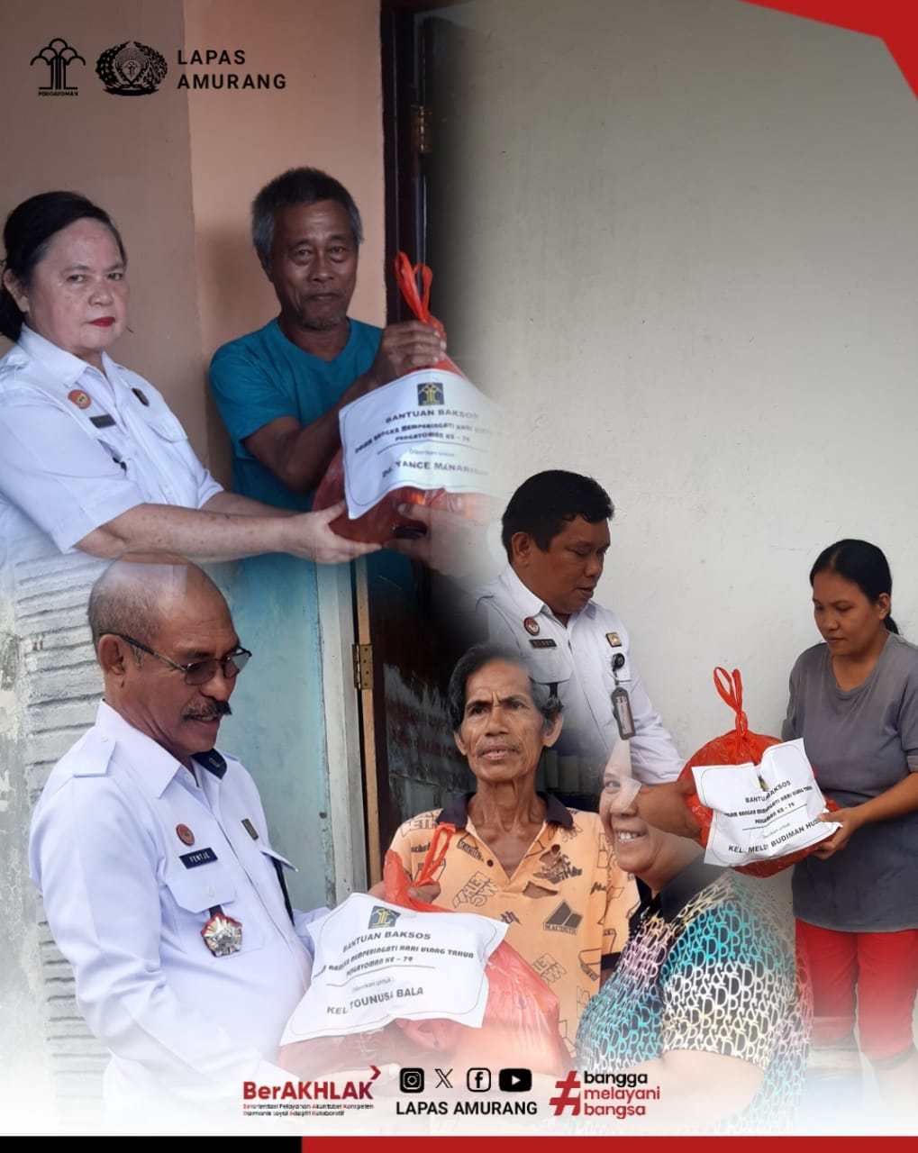 Dalam pelaksanaan Bakti Sosial Kemenkumham Peduli ini Lapas Amurang membagikan bantuan berupa sembako dengan turun langsung mendatangi rumah warga disekitar Lapas Amurang yang kiranya kurang mampu/membutuhkan.