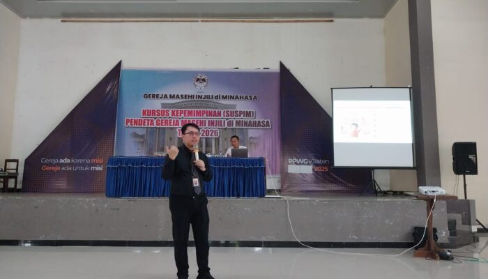 Jejakperintis|| Tomohon – Badan Pekerja Majelis Sinode (BPMS) GMIM menggandeng Otoritas Jasa Keuangan (OJK) sebagai narasumber dalam kegiatan Kursus Kepemimpinan (SUSPIM) Pendeta GMIM Tahun 2026 Gelombang Pertama. Kegiatan ini digelar di Pusat Pembinaan Warga GMIM Kaaten sejak 2 hingga 6 Maret 2026.