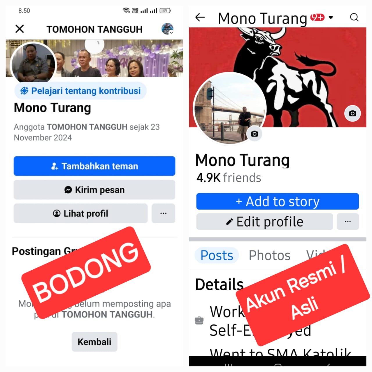 “Itu bukan akun FB saya. Bodong itu “, tegas Mono yang dikenal sebagai Tim Pemenangan CSSR.